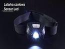 Latarka czołowa o strumieniu światła 80 lumenów. Dioda CREE 3 W, regulacja kąta nachylenia (36°), oświetlana odległość: 20 m. Regulowany pasek na głowę/kask/czapkę. Zasilana akumulatorem 1200 mAh Li-ion. Latarka posiada czujnik ruchu. Funkcja ta pozwala na oświetlenie miejsca pracy lub otoczenia bez zajmowania rąk, co znacząco wpływa na komfort wykonywanych czynności.